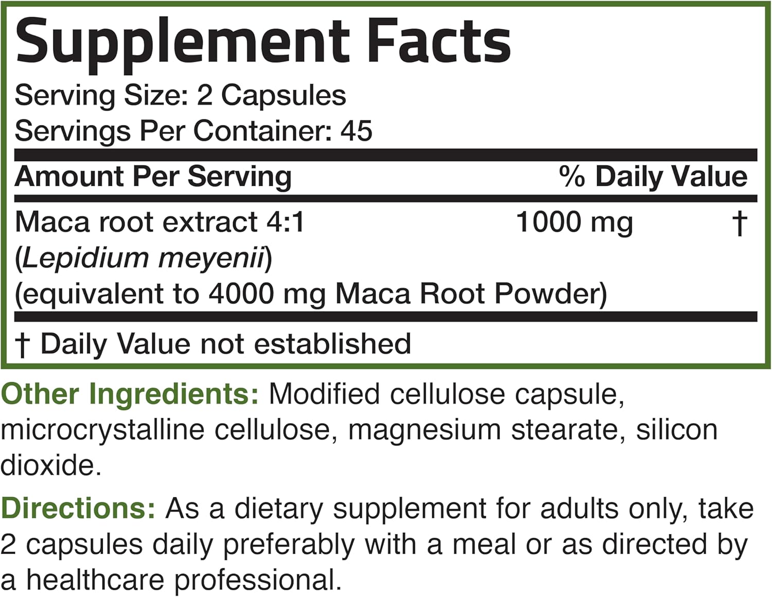 => Maca Root Extract 4:1 (Lepidium meyenii) – Equivalent to 4000mg Maca Root Powder