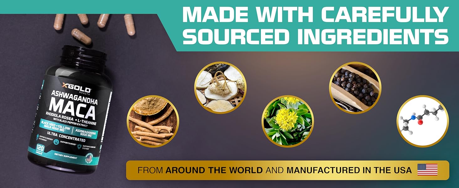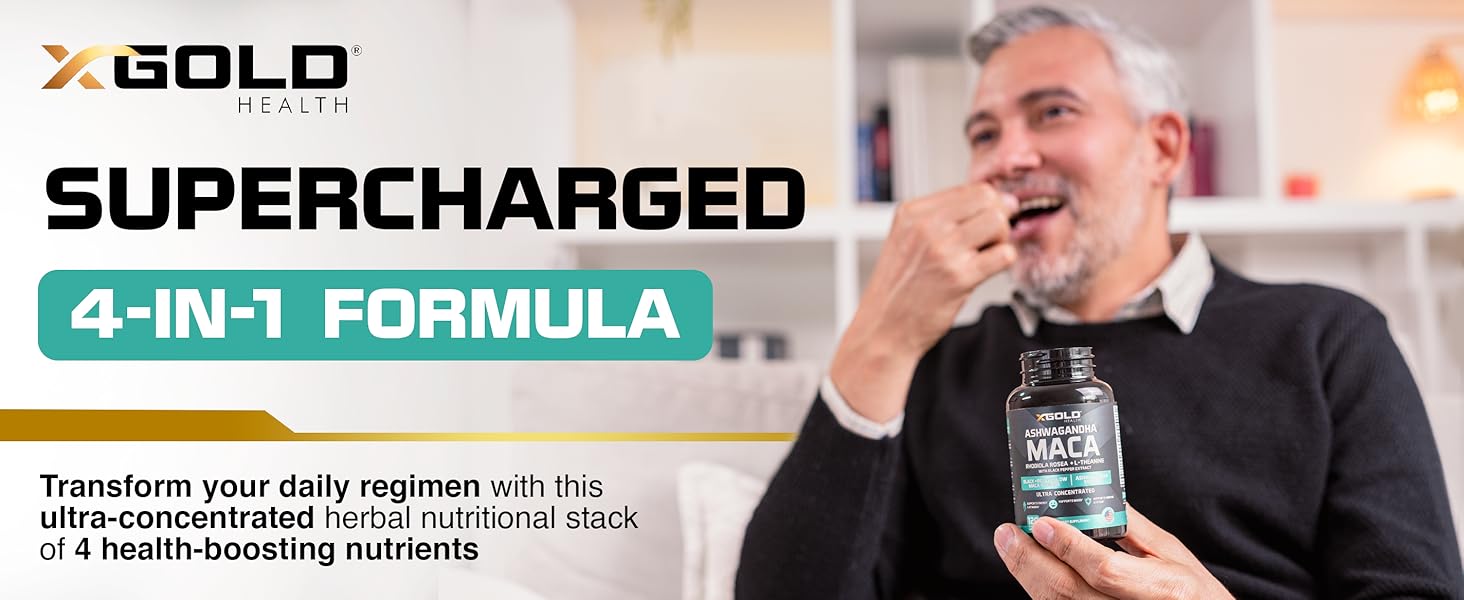 Unlock your body's limitless energy and vitality with our potent 4-in-1 herbal supplement, featuring 5000mg Ashwagandha, 4000mg Maca Root Extract (black, red, and yellow), 500mg Rhodiola Rosea, and 200mg L-Theanine, enhanced with 5mg Black Pepper Extract for better absorption. This high-potency formula contains 30:1 Ashwagandha Extract and 20:1 Maca Root Extract, delivering powerful benefits for mental clarity, hormonal health, and sexual vitality. With adaptogens that promote stress relief, mood balance, and energy, this supplement is designed to help you achieve your optimal performance—physically, mentally, and sexually.