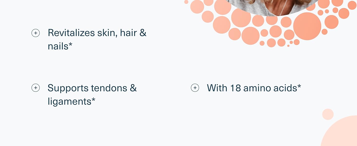 Youtheory's Collagen formula supplies the essential building blocks to support healthy aging and a more youthful appearance.*